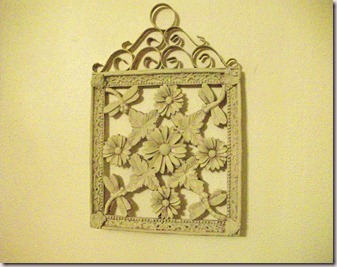 I really like how it turned out and its going to my booth at King’s Antiques tomorrow along with this little metal wall art piece I stained with a brown acrylic then I also dry brushed with Versailles. (Loving me some Versailles and hey I don’t even like green).